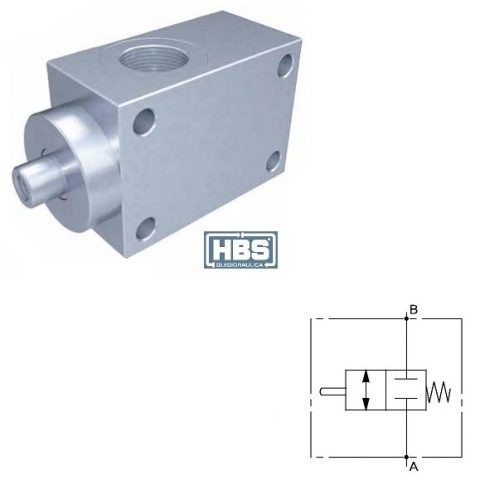 La valvola blocca normalmente il flusso nelle due direzioni e permette il flusso libero bidirezionale in posizione “premuta”.