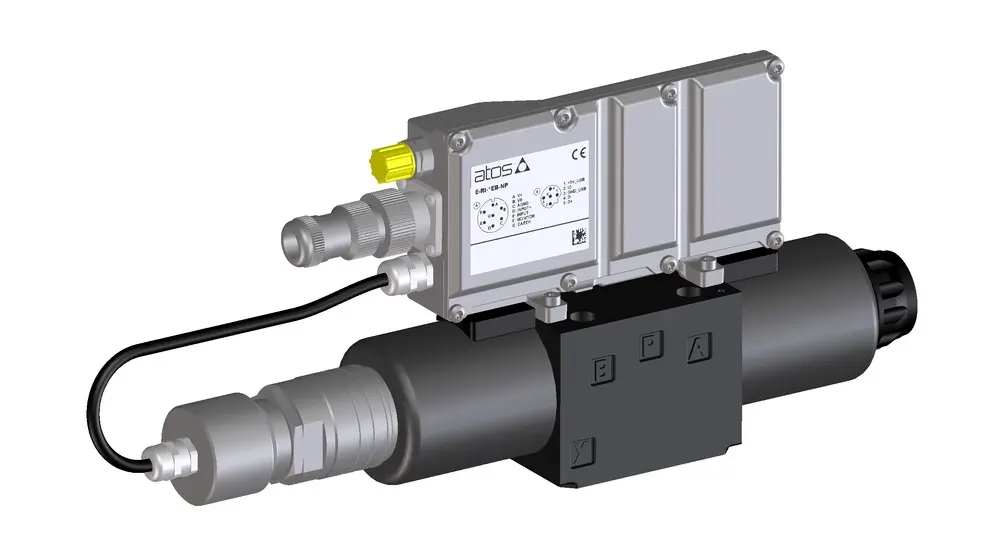 Valvole direzionali proporzionali digitali ad alte prestazioni, dirette, con trasduttore di posizione LVDT e ricoprimento positivo del cursore per controlli direzionali e regolazioni di portata non compensate. TID il driver digitale integrato esegue la regolazione idraulica della valvola in base al segnale di riferimento, analogico per TIDNP o CANopen per TID-BC. Per TID-NP, la connessione Bluetooth/USB è sempre presente per le impostazioni della valvola tramite l’app mobile e il software Atos per PC. Per TID-BC, l’interfaccia CANopen è sempre presente per le impostazioni della valvola tramite Fieldbus e software Atos PC. Il trasduttore LVDT garantisce un’elevata precisione di regolazione e sensibilità di risposta. Con le elettrovalvole proporzionali diseccitate, la posizione centrale meccanica del cursore è assicurata da molle di centraggio.