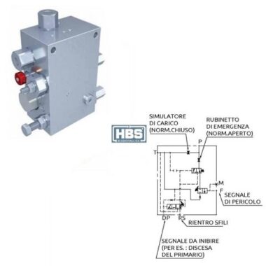 Valvola limitatrice di momento. Al raggiungimento della pressione di taratura manda a scarico la linea P (valvola di messa a scarico pilotata del distributore).