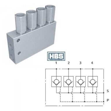 Blocco integrato con 4 valvole di blocco per limitatori di carico.