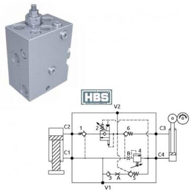 | B900301.01.00 | 2 | - | – | 64 bar | 17 bar/turn | 45 l/min | 250 bar | V1, V2, C1, C2 / 3/8″G | 1.8 kg |