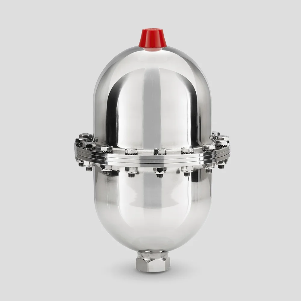 I nostri Smorzatori di Pulsazioni con Membrana in gomma sono realizzati in acciaio INOX. Volumi da 1,5 a 8 litri e pressioni fino a 30 Bar.