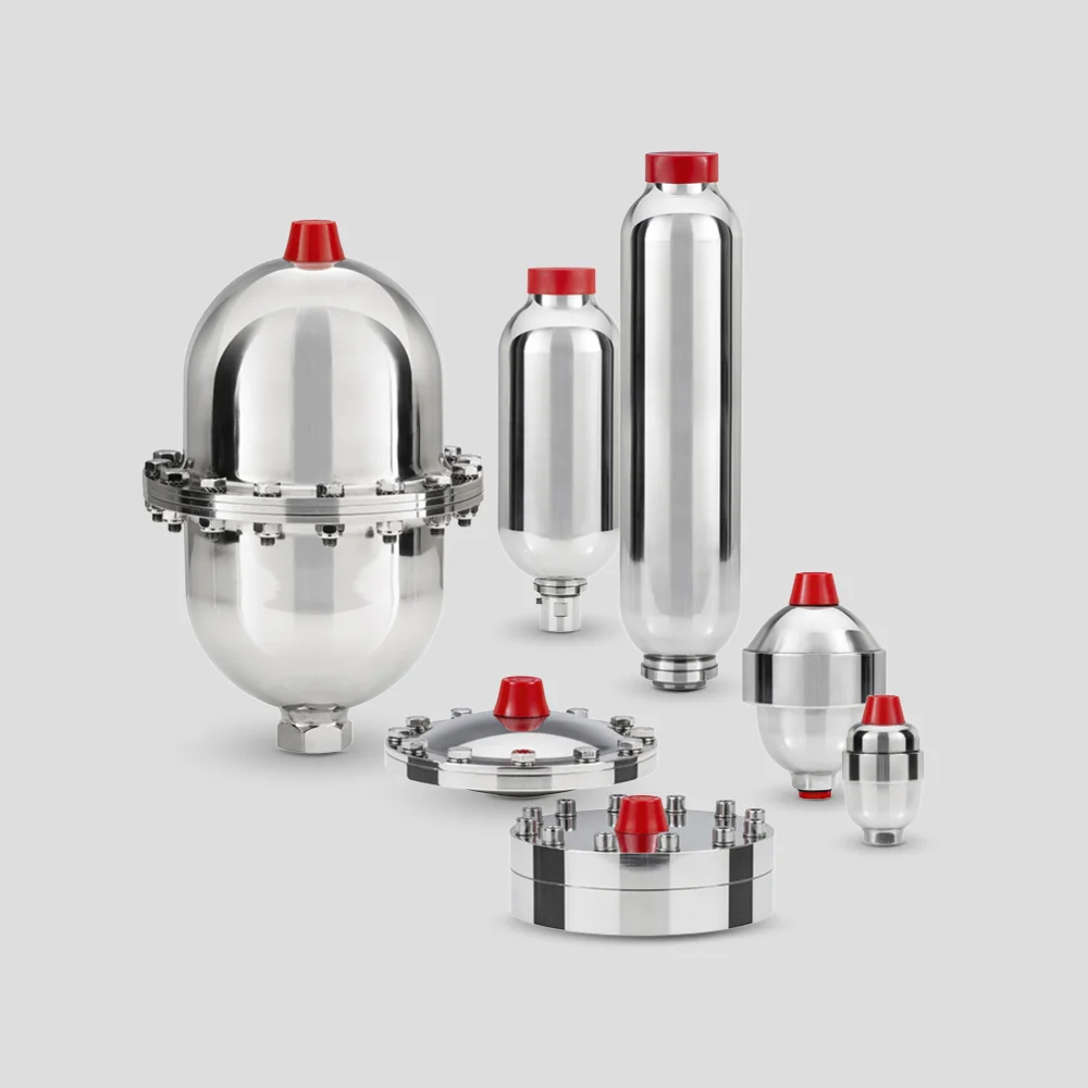 Smorzatori di pulsazioni con membrana e soffietto in PTFE, soffietto in metallo e altri materiali, studiati per applicazioni con qualsiasi tipo di liquido, da particolarmente aggressivo all’alimentare e per qualsiasi livello di pressione.