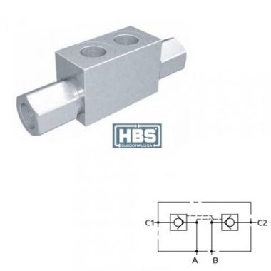 Permette il flusso libero da A verso C1 e da B verso C2, mentre nelle direzioni inverse il flusso รจ pilotato. Idonea al sostentamento di un carico, non al controllo discesa.