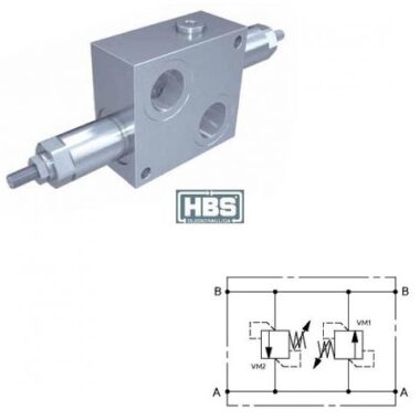 Valvola limitatrice di pressione doppia incrociata con tenuta ad otturatore, con funzione di protezione del circuito da sovrapressioni.