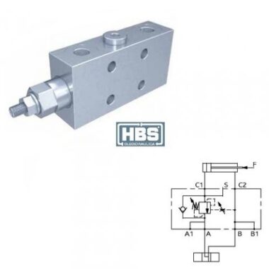 Valvola di bilanciamento a semplice effetto, consigliata per distributori con spole a centro aperto in neutro. Collegare all’impianto come da schema. La valvola permette: flusso libero da A verso C1, sostentamento del carico con distributore in neutro o a pompa ferma, controllo del movimento di discesa del carico a seguito del pilotaggio della valvola pilotaggio, protezione da sovrappressioni nel cilindro.