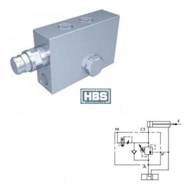 Valvola di bilanciamento a semplice effetto, consigliata per distributori con spole a centro aperto in neutro. Collegare all’impianto come da schema. La valvola permette: flusso libero da A verso C1; sostentamento del carico con distributore in neutro o a pompa ferma; controllo del movimento di discesa del carico a seguito del pilotaggio della valvola pilotaggio, protezione da sovrappressioni nel cilindro.
