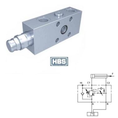 Valvola di bilanciamento a semplice effetto, consigliata per distributori con spole a centro aperto in neutro. Collegare all’impianto come da schema. La valvola permette: flusso libero da A verso C1, sostentamento del carico con distributore in neutro o a pompa ferma, controllo del movimento di discesa del carico a seguito del pilotaggio della valvola pilotaggio, protezione da sovrappressioni nel cilindro.