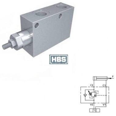 Valvola di bilanciamento a semplice effetto, consigliata per distributori con spole a centro aperto in neutro. Collegare all’impianto come da schema. La valvola permette: flusso libero da A verso C1, sostentamento del carico con distributore in neutro o a pompa ferma, controllo del movimento di discesa del carico a seguito del pilotaggio della valvola pilotaggio, protezione da sovrappressioni nel cilindro. La valvola di controllo è a cartuccia.