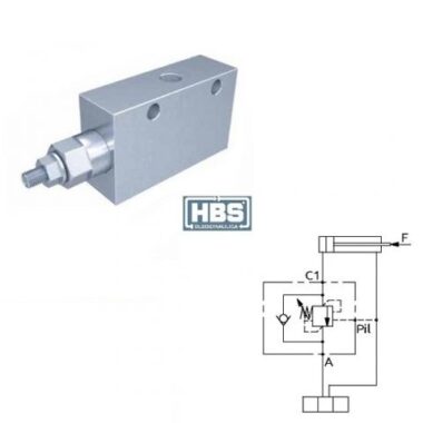 Valvola di bilanciamento a semplice effetto, consigliata per distributori con spole a centro aperto in neutro. La valvola permette: flusso libero da A verso C1, sostentamento del carico con distributore in neutro o a pompa ferma, controllo del movimento di discesa del carico a seguito del pilotaggio della valvola pilotaggio, protezione da sovrapressioni nel cilindro.