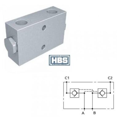 Permette il flusso libero da A verso C1 e da B verso C2, mentre nelle direzioni inverse il flusso รจ pilotato. Idonea al sostentamento di un carico, non al controllo discesa.