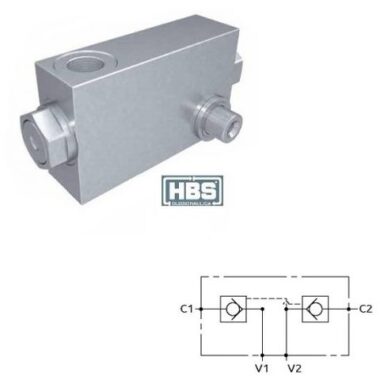 Permette il flusso libero da V1 verso C1. Idonea al sostentamento di un carico, non al controllo discesa.