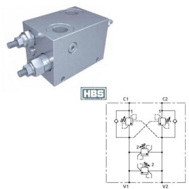 Valvola di blocco bilanciata doppia con valvola di massima doppia incrociata.